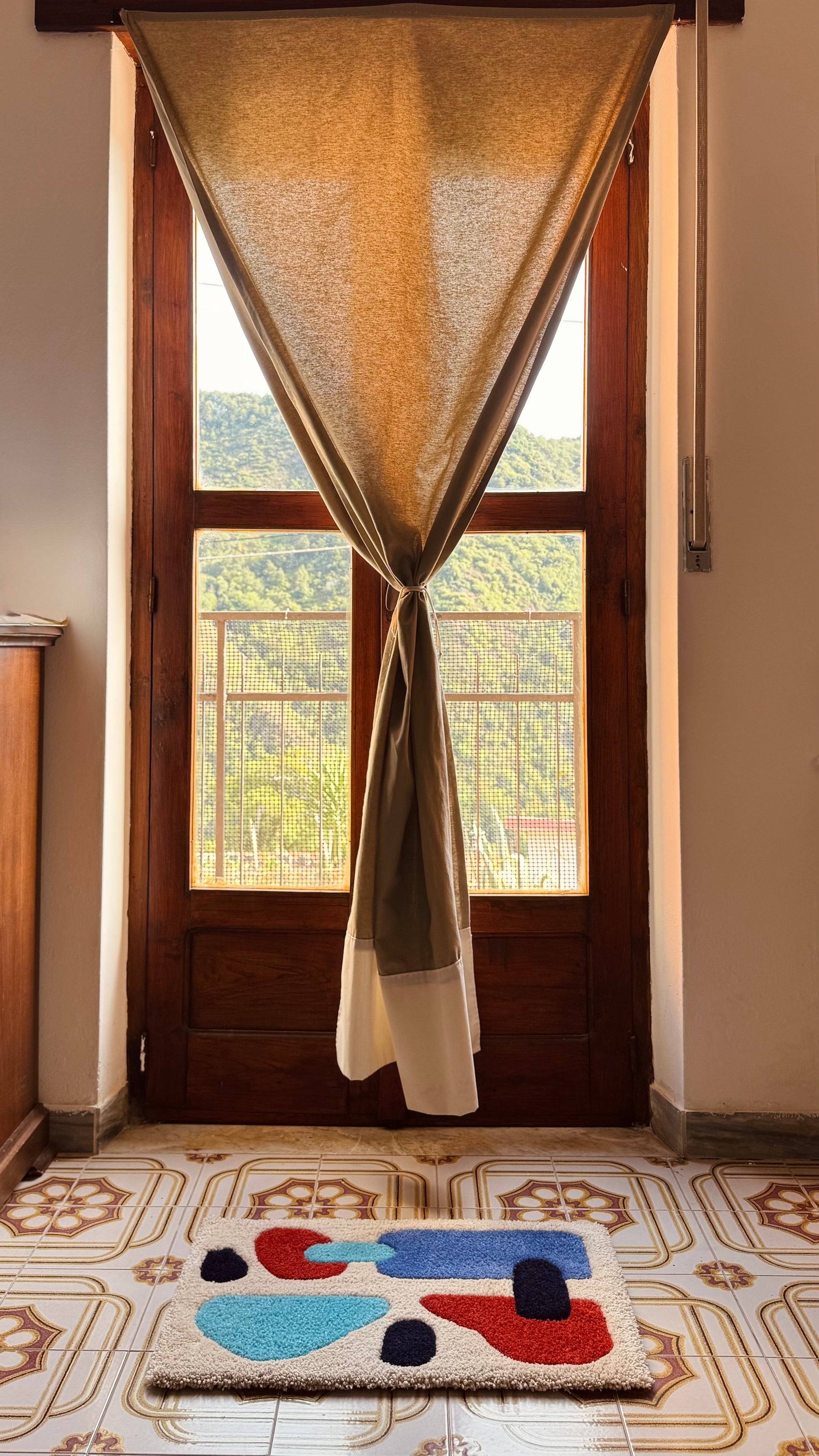 La Alfombra Prisma juega con contrastes únicos: azules profundos, naranja tostado y beige se entrelazan en un diseño abstracto que refleja movimiento y equilibrio. Confeccionada mediante tufting artesanal, es una pieza que llenará de energía y estilo contemporáneo cualquier espacio de tu hogar.
